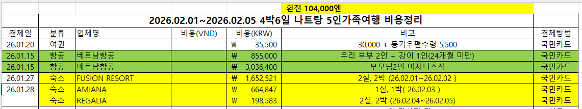 | 2026.02.01~2026.02.05 4박6일 나트랑 5인가족여행 비용정리 | ||||||