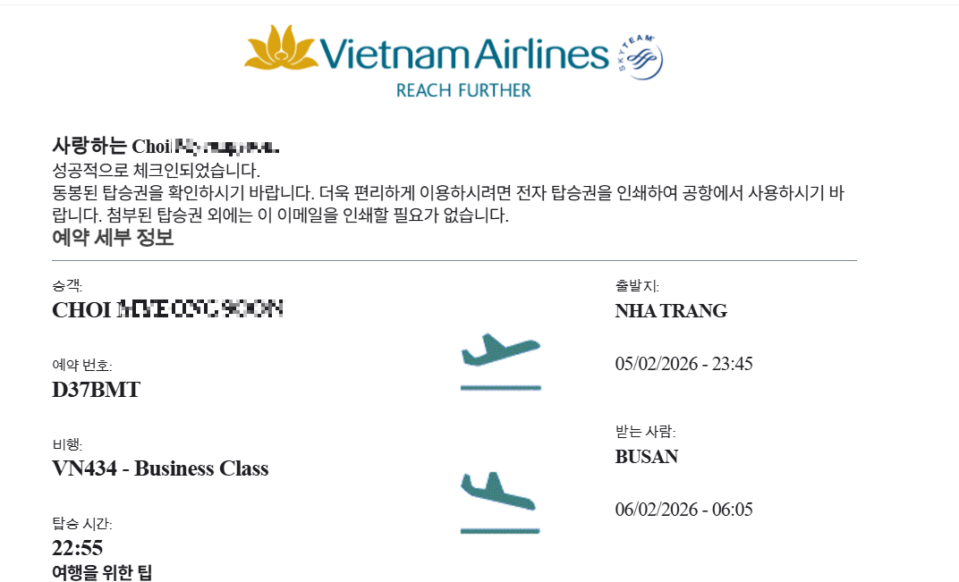 부산 김해공항 - 나트랑 깜란공항 베트남항공 이용기 .