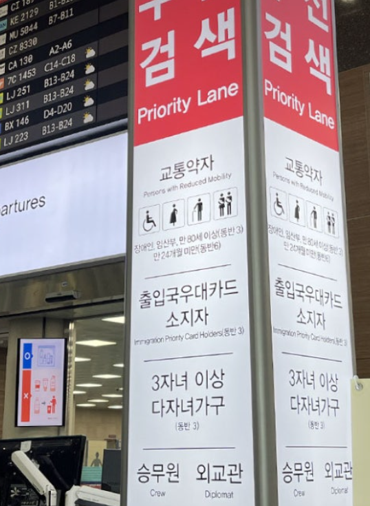 김해공항에선 3자녀 이상 다자녀가구 /임산부/장애인/만 80세이상 / 24개월 미만 아이 동행시 패스트트랙을 무료로 이용할 수 있고.