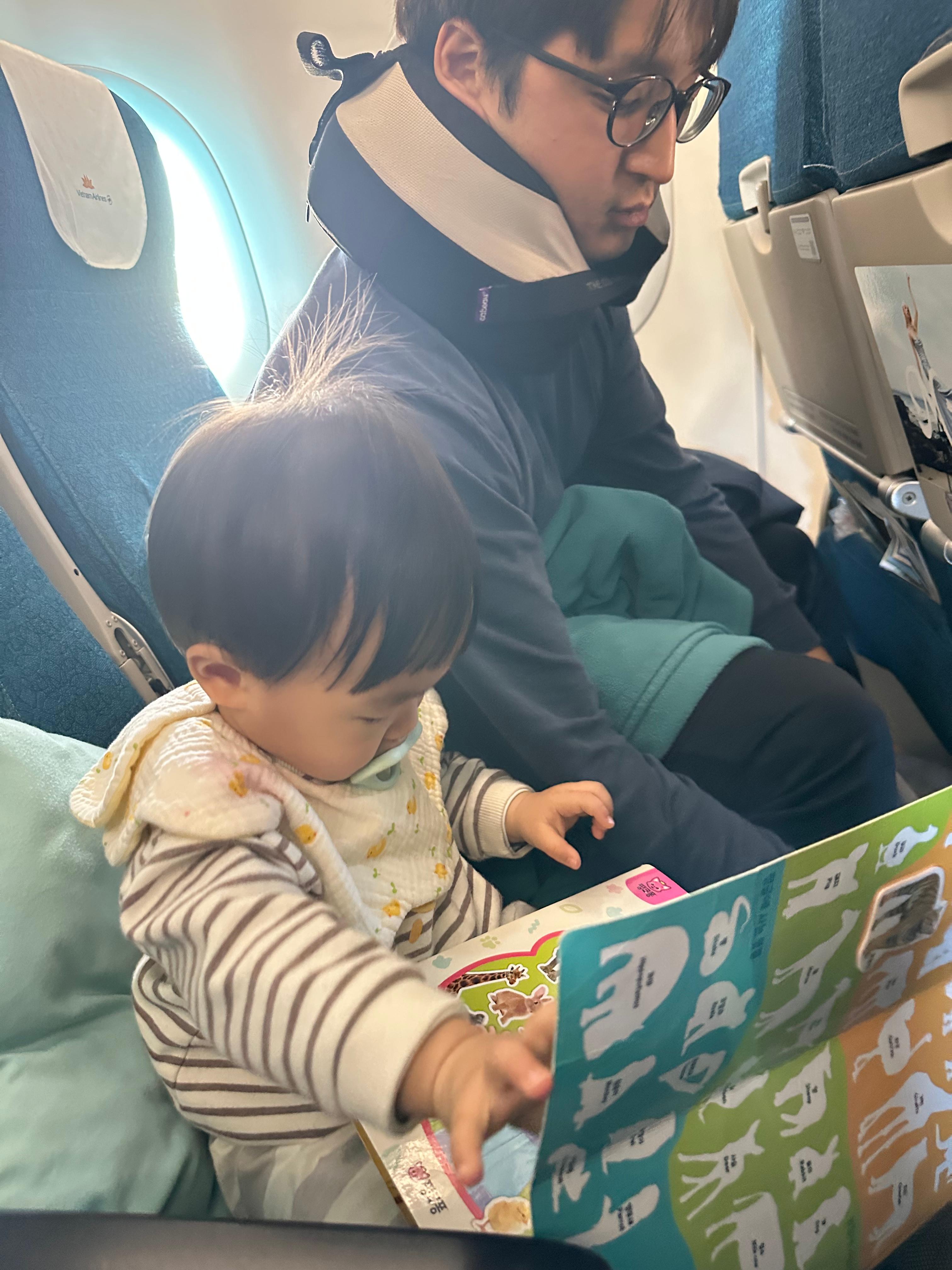 그리고 비행기가 만석이 아닌 이상, 24개월 미만 아기 데리고 타면 승무원 재량으로 한 자리 주시는 것 같다. 처음 착석할때 남편과 나는 B,C석이고 A자리엔 다른사람이 타고 있었는데- A석 손님에게 다른 비어있는 자리로 바꿔줄지 물어보시고(아마 거부하는 손님은 없을듯..) 보내주셔서, 덕분에 편하게 갈 수 있었다.