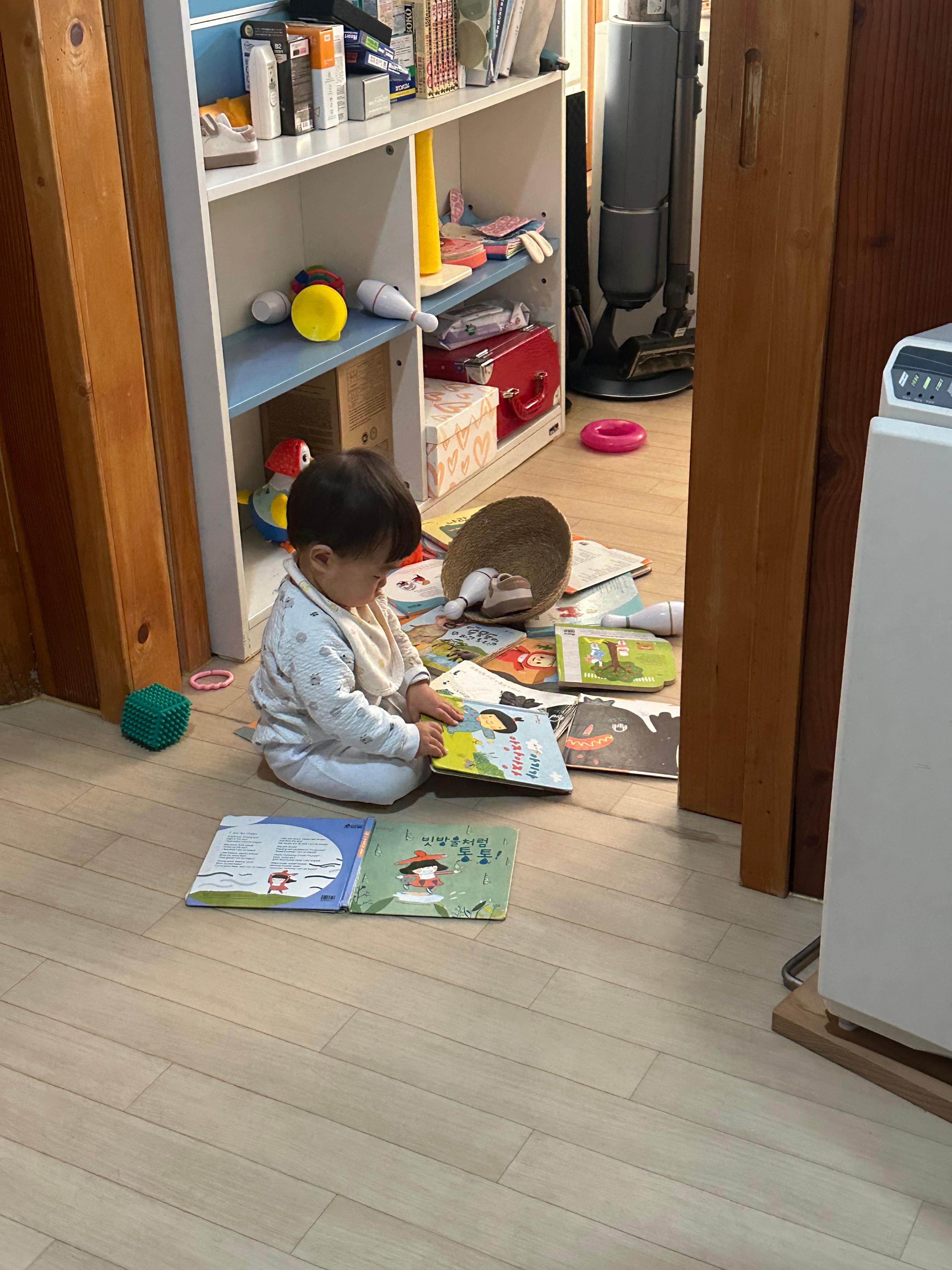 그림책 보는 걸 좋아해서 혼자 노는 시간에 책을 잘 보고있을 때가 많은데 (겨우 12개월 꼬맹이가 말이다!) , 여러 책들 중 좋아하는 책이 2권 있는데 맨날 그걸 찾아서 본다. 책 제목은 '한입만'과 '무엇을 탈까'이다. 11개월땐 한입만을 봤었다면 12개월엔 '무엇을 탈까'가 1순위가 된 것 같다. 수십권의 책들을 섞어놔도 늘 이 두 책만 찾아서 보는 강이. 이렇게 어린 아가에게도 취향이라는 게 있다는 것이 너무너무 신기하다.