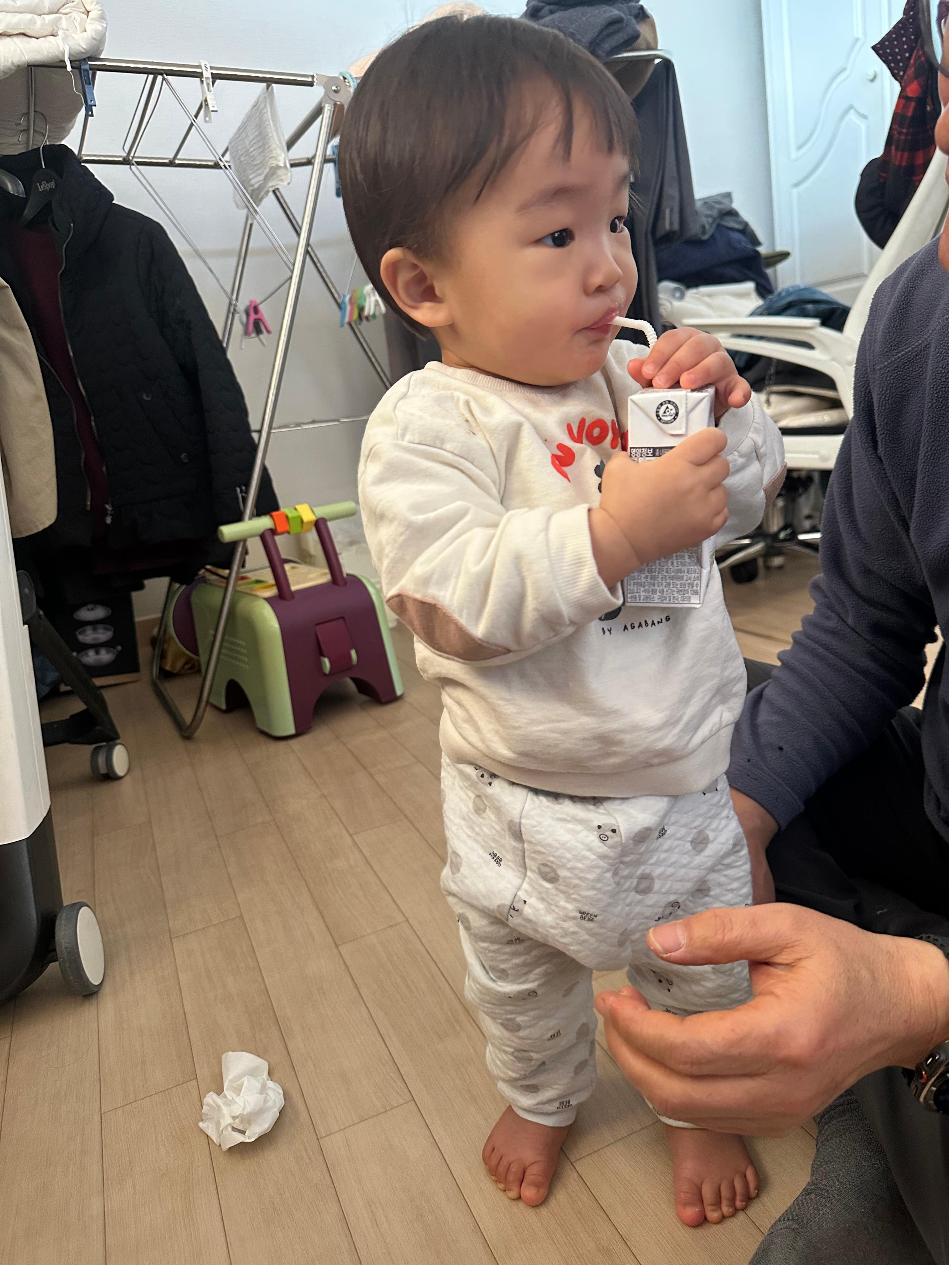 12개월, 돌 지나고부턴 생우유를 먹여도 된다 해서 분유수유하는 아기는 분유는 서서히 줄이고 우유로 전환하라는데. 아직 부모인 우리가 마음의 준비가 안 되어 분유를 아직도 먹이고 있다. 젖병에 담긴 분유를 쪽쪽 빨면 안정감이 드는지 더 입면을 잘 해서이고.. 새벽에 배고파서 깰때 분유 타서 먹이면 또 바로 잠에 들어서이다.