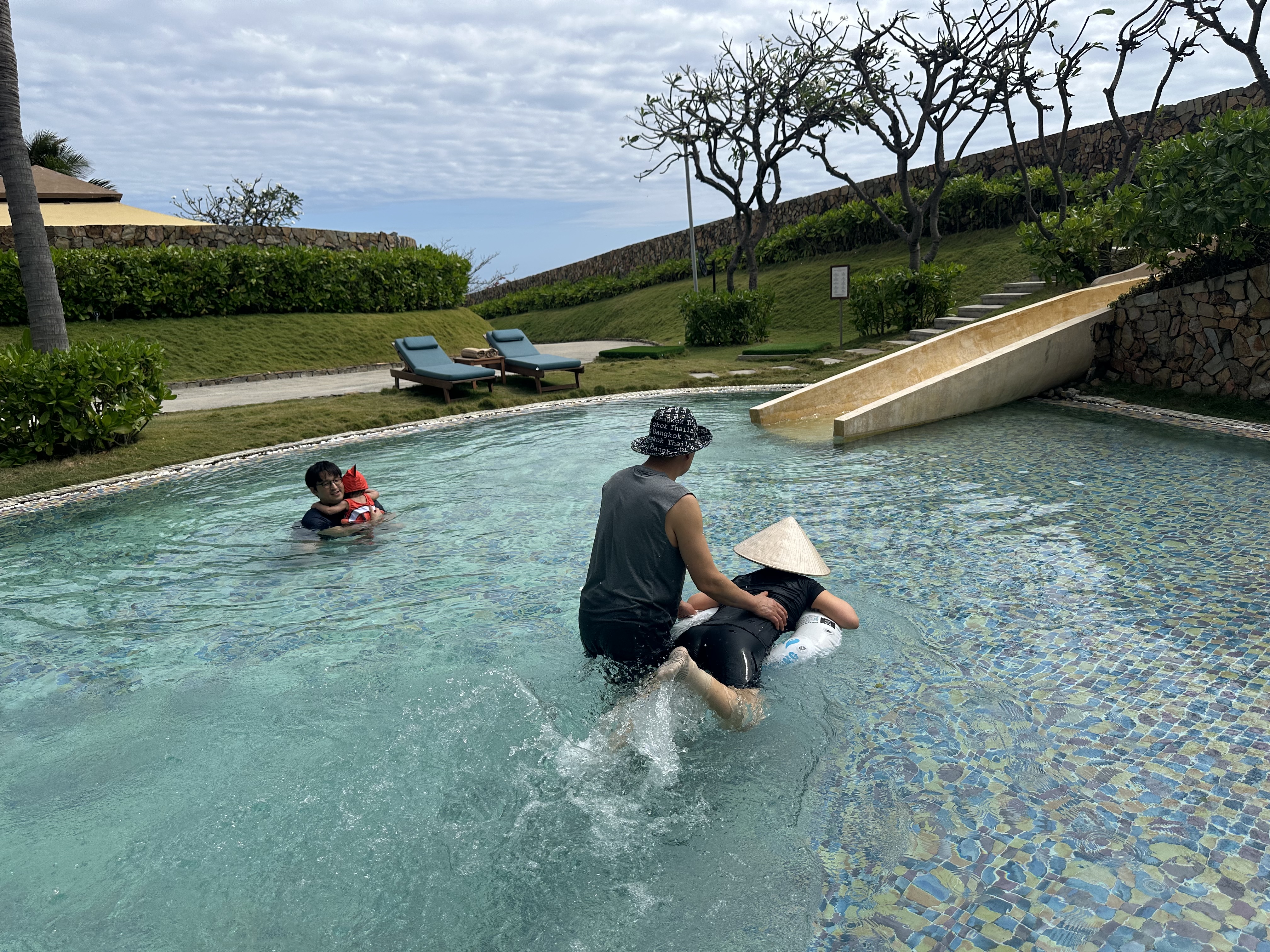 수영장 온수풀도 있어서 여기선 룰루를 물에 데려갈 수 있었다. (그래봤자 온도가 30도인데 2월의 나트랑은 덥지 않아서.. 특히 그날은 흐리고 바람 불어서 룰루가 추워하는 것 같아 오래있진 못했다. 여름에 오면 잘 즐길 수 있을 듯 하다.)