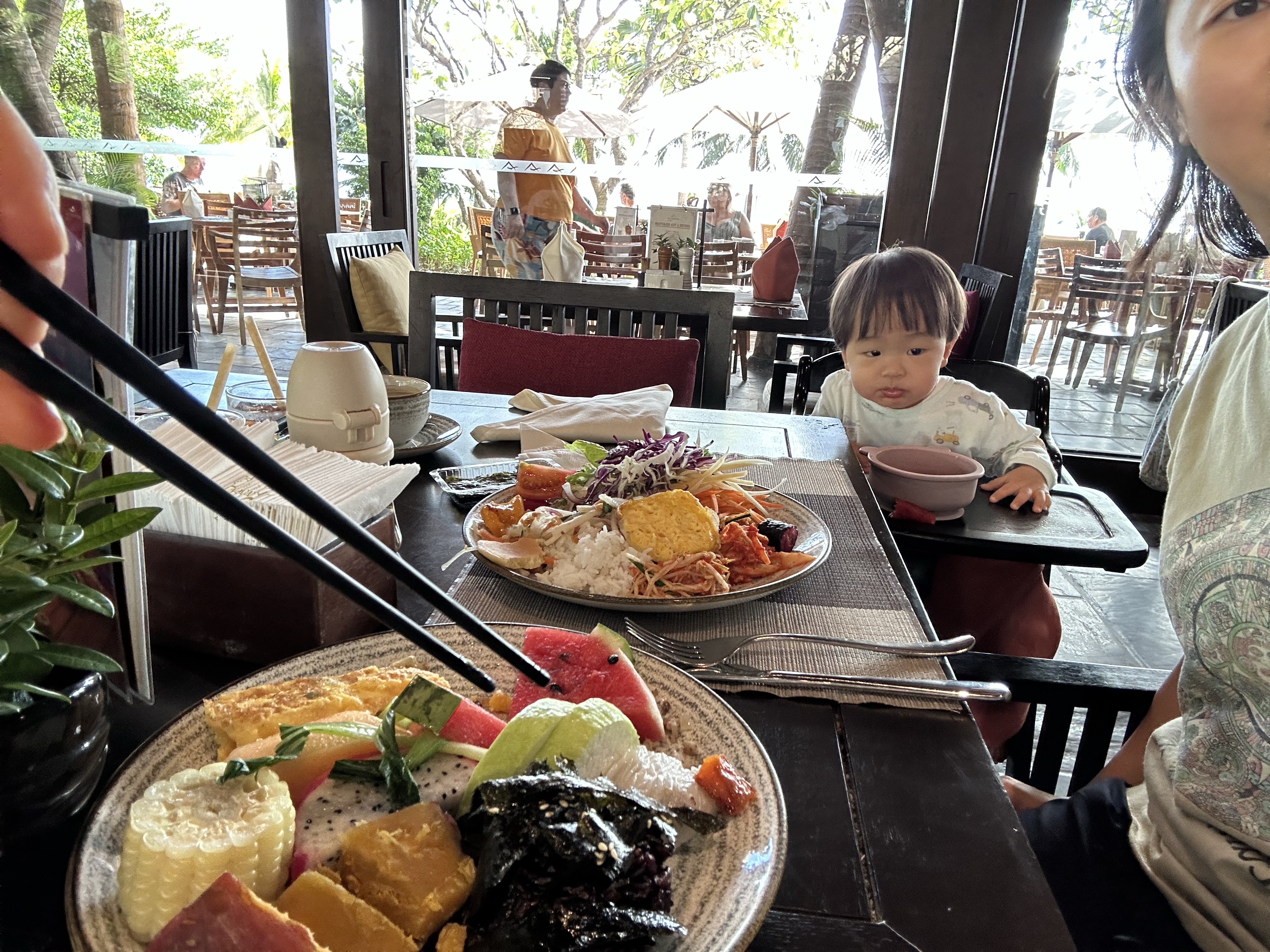 수박도 여기서 처음 먹었는데 어찌나 잘 먹던지. 잘 먹는 게 어디야..! 하고 열심히 먹였다. 맨밥에 김이라도 먹여야지 하고 가져간 김은 역시 큰 도움이 되었다. 동남아 호텔 조식에 보통 밥은 기본으로 나오기 때문 :)