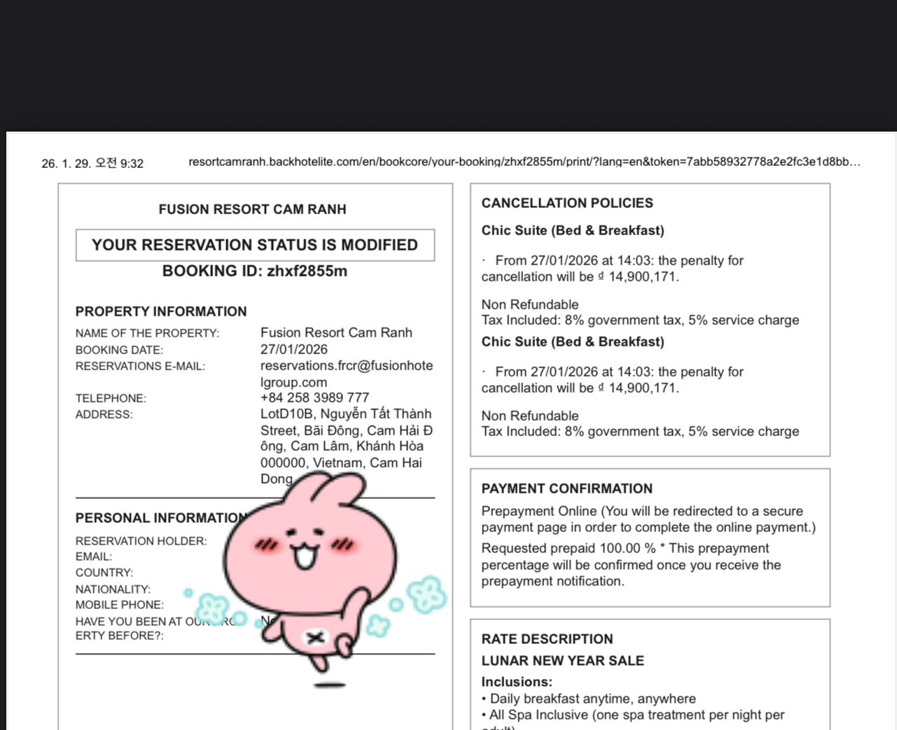 2026.02.01-2026.02.05 부산 김해공항 - 나트랑 깜란공항 베트남항공 이용기 .이번 여행은 효도가 테마인지라 비행기부터 신경써서 예약했다. 부모님 좌석은 비지니스석으로, 강이랑 우리 셋 좌석은