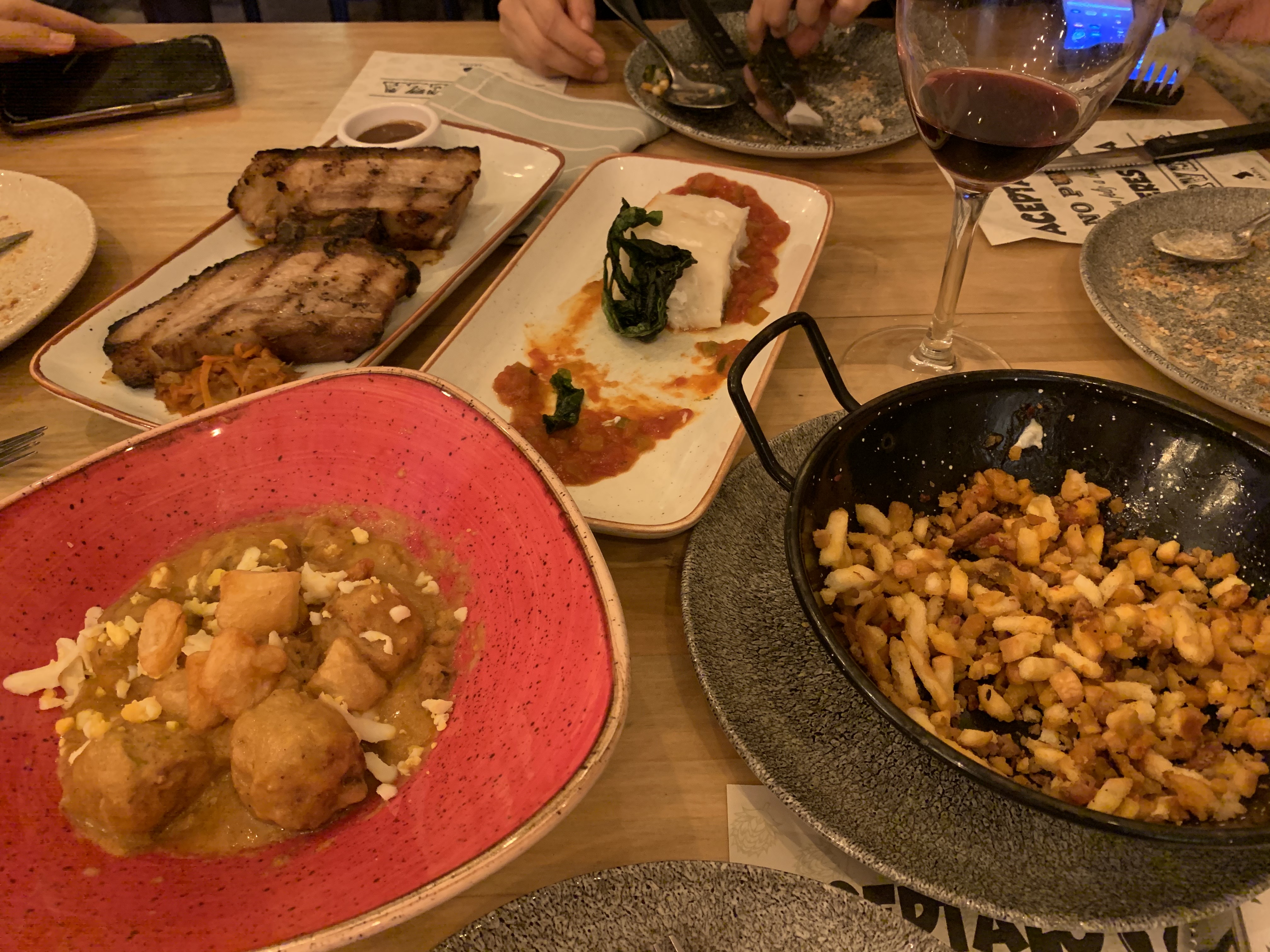 스페인은 우리나라처럼 필요할 때 웨이터를 부르는 진동벨 문화가 없으므로 이걸 시키면 식사시간 1시간 정도는 잡고 여유롭게 가는 게 좋다. (사람 많은 식당은 1시간 반 정도,,)가져다 준 음식 다 먹어갈 즈음 웨이터가 와서 두번째(혹은 세번째) 음식을 갖다주며 빈그릇을 치워준다.